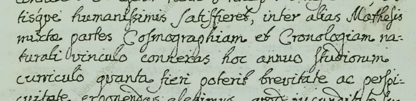 This Corpus is not merely a relic of antiquity; its scientific content is the first book of Applied Mathematics and shifts the timeline of the discipline back by decades, establishing it as a foundational book. The Corpus contains the only known extant holograph manuscript containing the word catoprics, the science of reflection with mirrors to focus light, used in Newton’s Telescope. Le Seur stands as a pivotal figure who bridged Cosmography to Cosmology. Le Seur was not merely a commentator but an active interpreter and elucidator of Newton's revolutionary ideas. He marked a paradigm shift in scientific inquiry from mere description (Cosmography) to physical explanation (Cosmology). His Holograph Manuscript Codex, embodies this transition by applying Newtonian laws to celestial bodies. He laid the foundation for spacetime Quantum Physics by intentionally distinguishing between (actual specimen) “Cosmographiam [space] and Cronologiam [time]”, exploring fundamental layers of the universe beyond classical mechanics. The evolution from mapping celestial positions to modeling physical forces laid the groundwork for modern computational science. Analogous to the computing datasets (Ephemerides and Sine tables) used by Le Seur to predict planetary motion, contemporary sciences rely on vast data to model complex realities. Similarly, AI modeling reflects Le Seur’s applied approach, using algorithms to derive patterns from noise; Bitcoin blockchain technology evokes the same principle, utilizing distributed ledgers to create trust-less systems based on mathematical proofs.